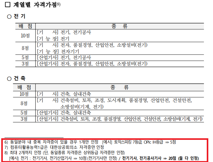 - 전기직, 건축직의 관련 자격증은 배점도 아주 큽니다.
