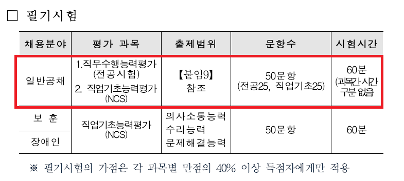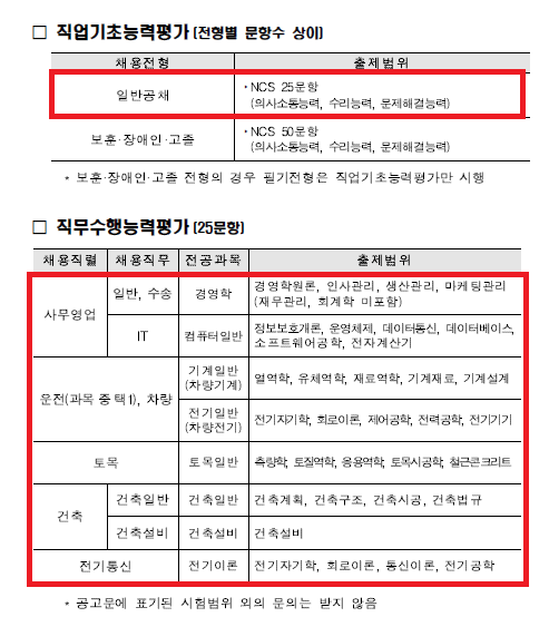 - 1차 서류 전형 적격자에 한해 NCS직업기초능력 샘플문제 제공