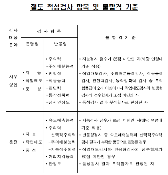 [철도적성검사 불합격기준]