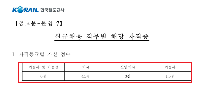 [직군별 자격 가산점]
