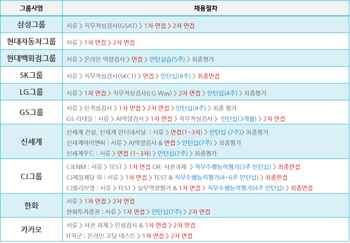 이번 포스팅은 최근 6개월간 진행된 주요 대기업 채용 전형을 정리해봤습니다.