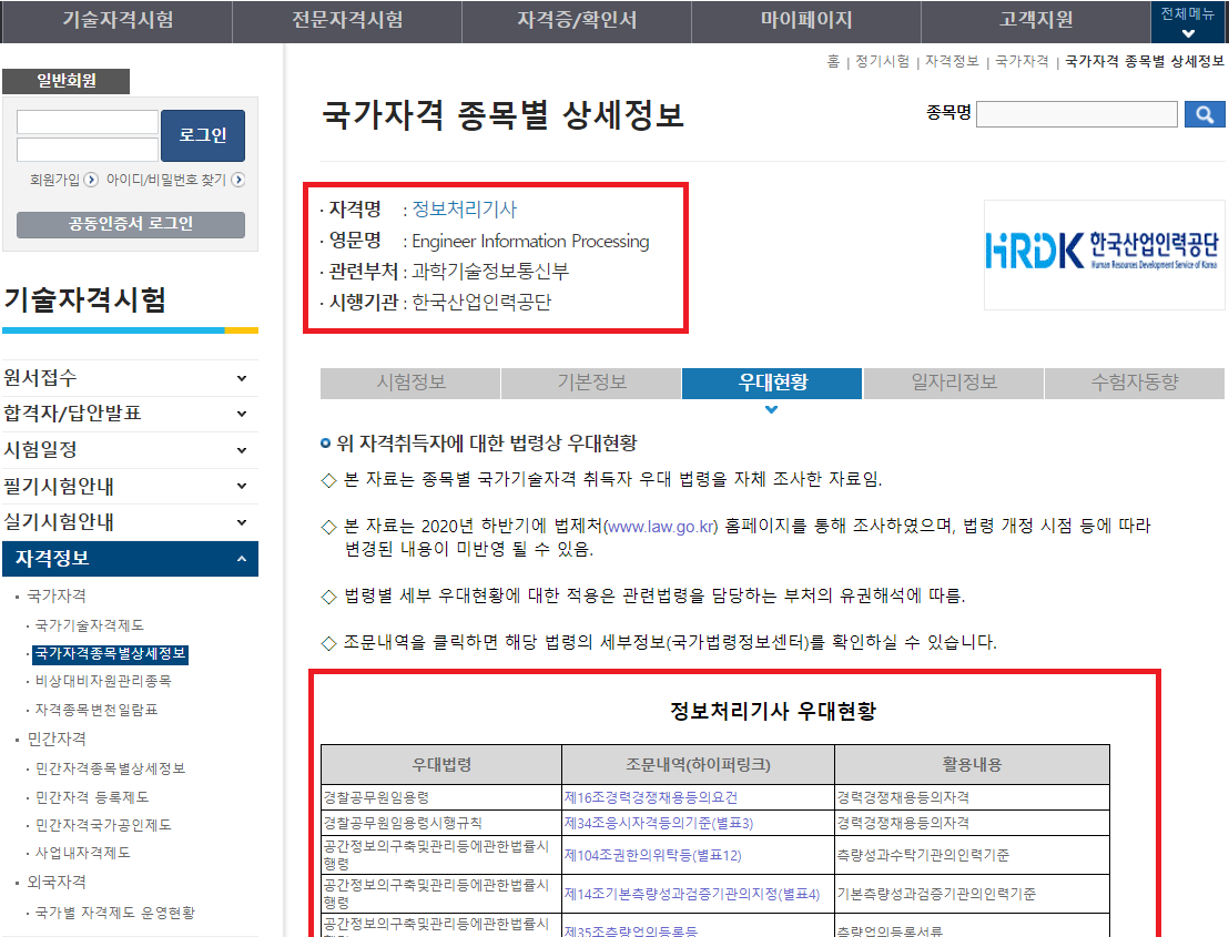 무엇보다, 자격증별 우대 법령 정보도 볼 수 있기 때문에 자격증 준비에 확신을 가지고 임할 수 있습니다.