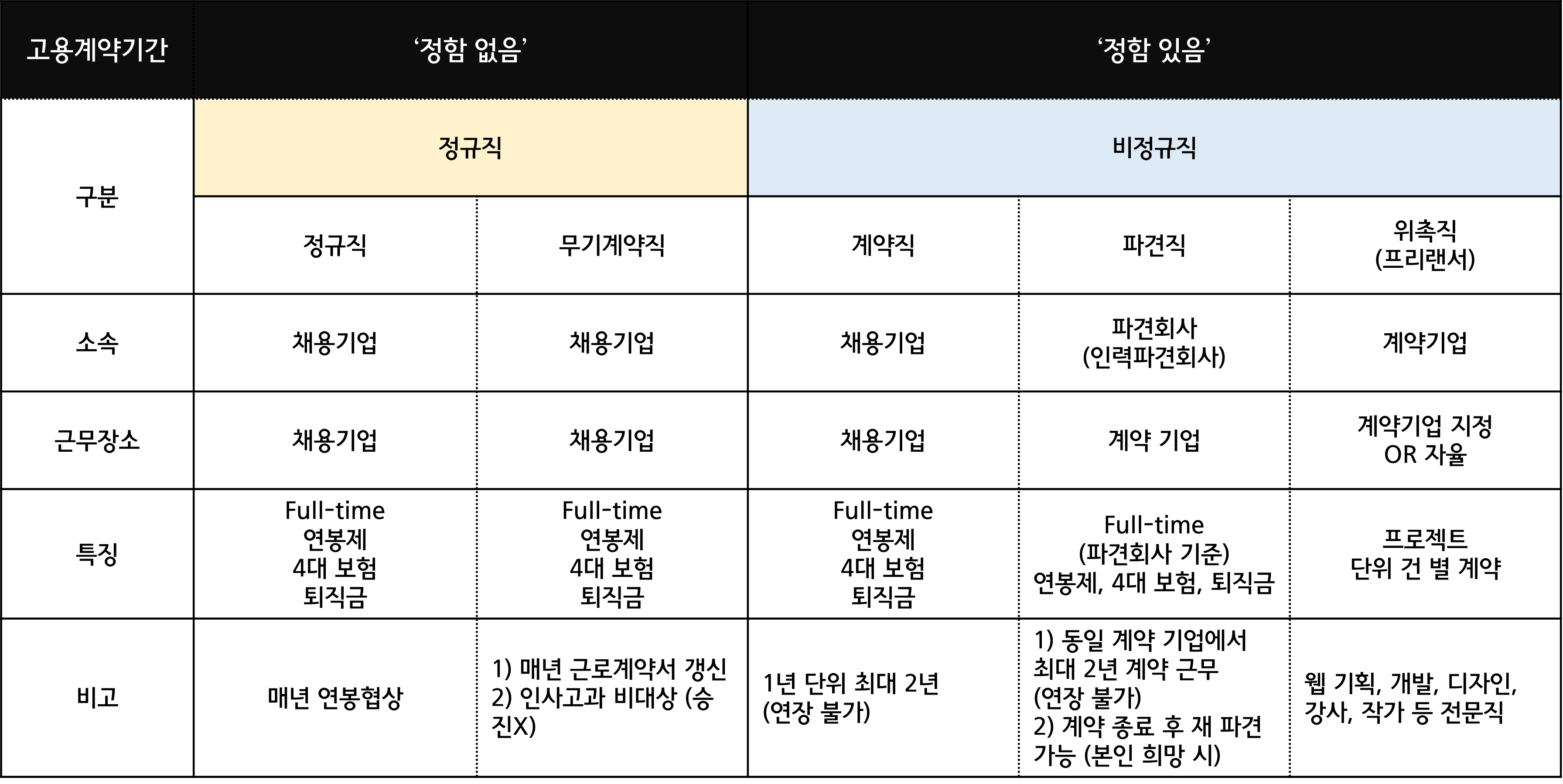고용계약기간에 따라서 불리는 다양한 명칭과