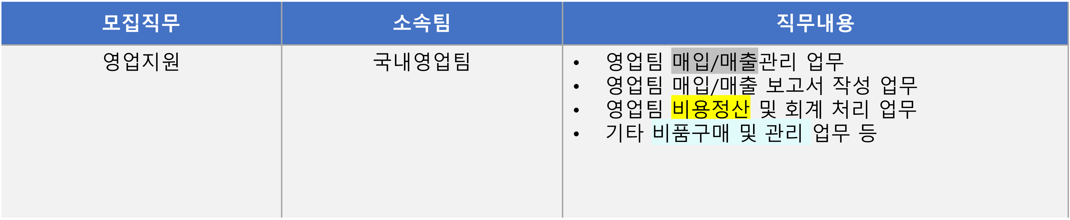 4) 채용공고상의 '직무내용' 키워드와 최대한 호환시킬 것