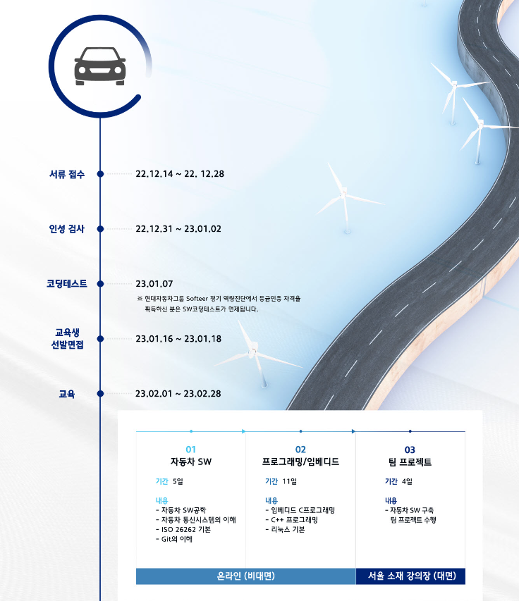 [현대모비스 채용연계형 SW아카데미 2기 교육생 모집] 온라인 채용설명회 사전신청하기 (~12/18(일))[현대모비스 채용연계형 SW아카데미 2기 교육생 모집] 소개 홈페이지 바로가기※ 서류 접수는