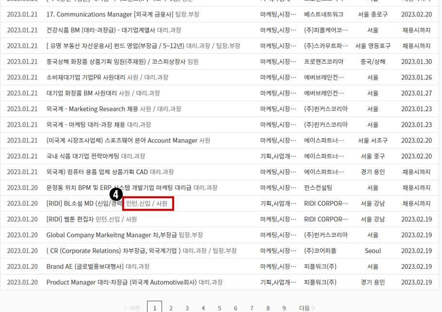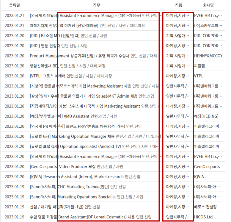 - 그런데 직무로 분류는 됐지만 경력직 공고와 혼재되어 있기 때문에 일일히 신입, 인턴 포지션 공고를 눈으로 분류해야