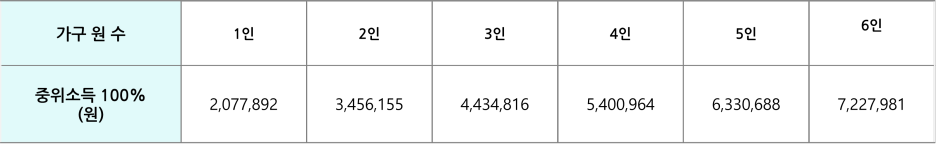 (본인이 속한 가족 총 숫자에 해당하는 소득 금액 이하면 자격부합)