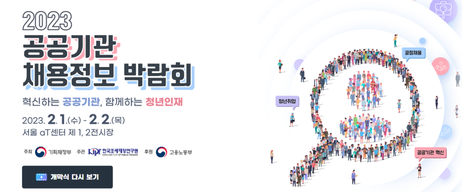 | 2023 공공기관 채용박람회 (공식홈페이지) (0) | 2023.01.15 |