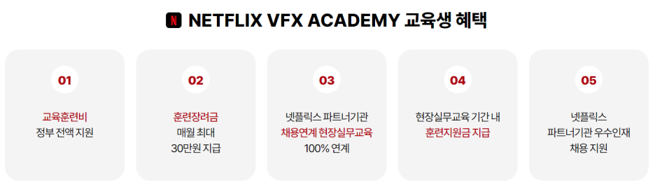 가장 큰 혜택은 교육 이수 후 'NEXFLIX(넷플릭스)' 파트너 기관으로의 채용 연계가 이뤄진다는 점입니다.
