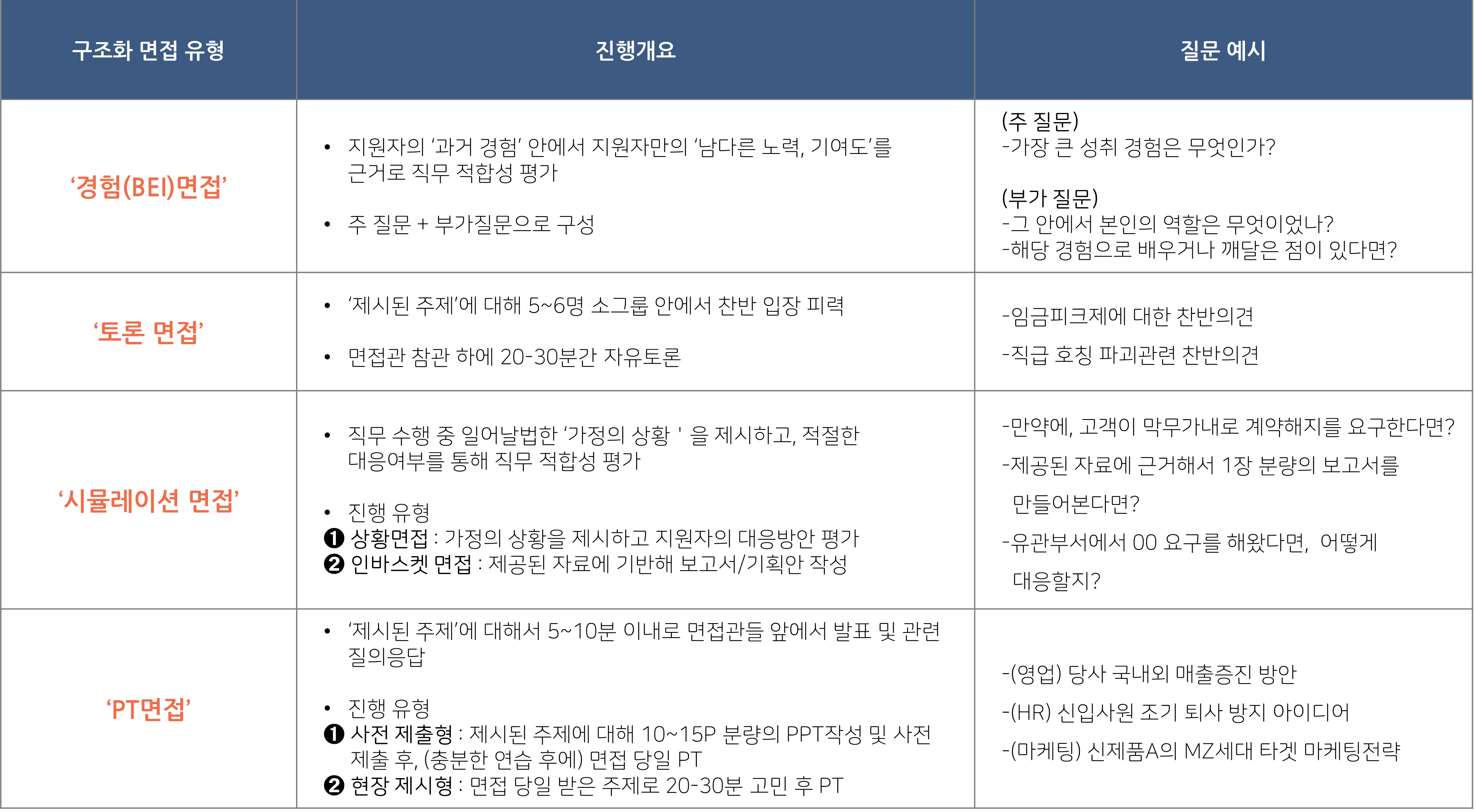 오늘은 구조화면접 2탄- 구조화면접 유형에 대해서 알아보겠습니다.