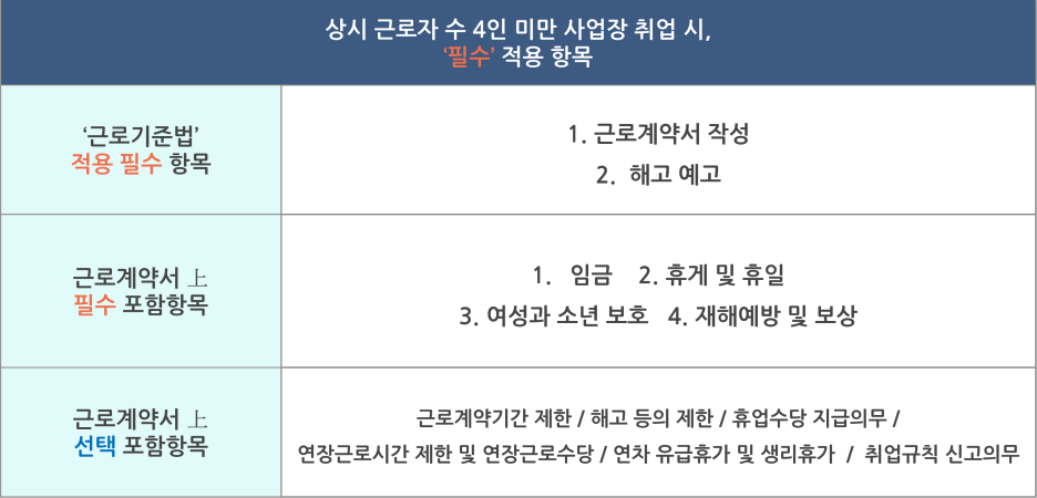 우리 나라의 경우 사업장에서 근무 중인 '상시 근로자 수'에 따라서 적용 범위를 달리하고 있습니다. (5인 미만 / 10인 이상)