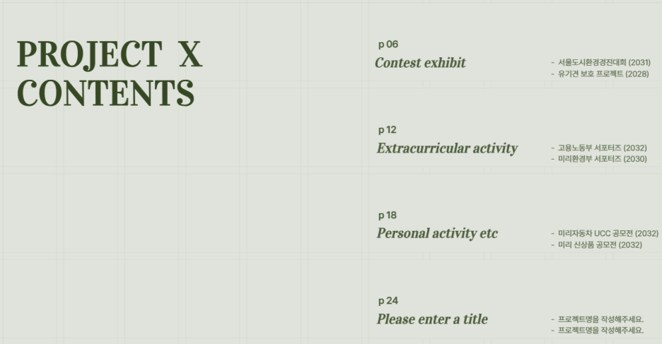 목차가 있으면 평가자가 중점적으로 보고 싶은 작업 성과를 쉽게 보여줄 수 있습니다.