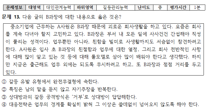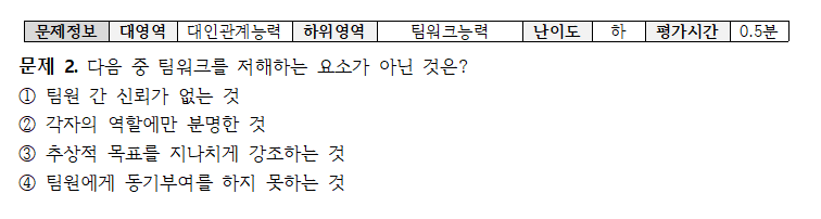 아래는 NCS국가직무능력표준 사이트에서 제공하는 대인관계능력 필기문항 예시입니다.