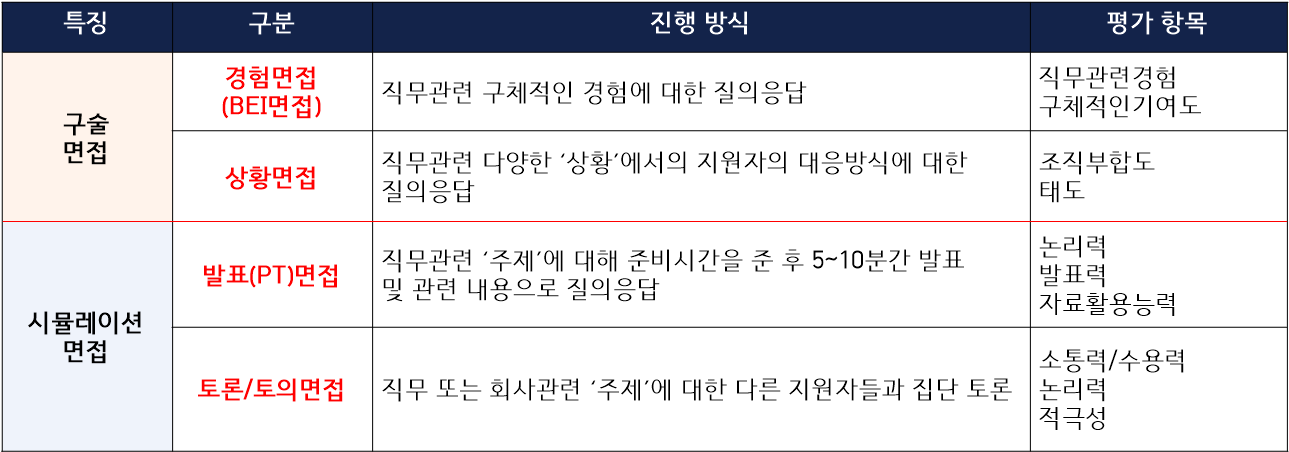 최근에는 아래와 같이 면접 유형이 세분화되면서 지원자의 직무 관련 '개인 및 조직 역량'을 다양한 측면에서 평가하고
