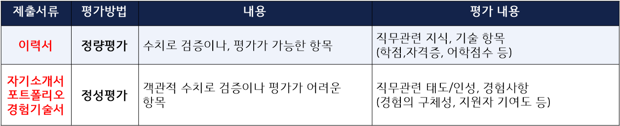 많은 취준생들이 '자소서'에만 열을 올리는 이유도 서류전형에 대한 평가 요소를 정확히 이해하지 못하기 때문인데요~