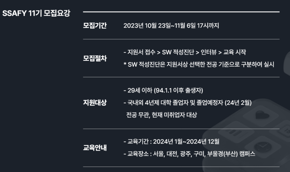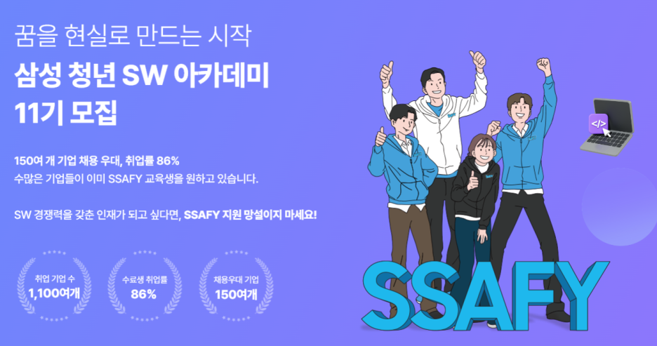 삼성 청년SW 아카데미가 11기 신입생을 모집합니다.
