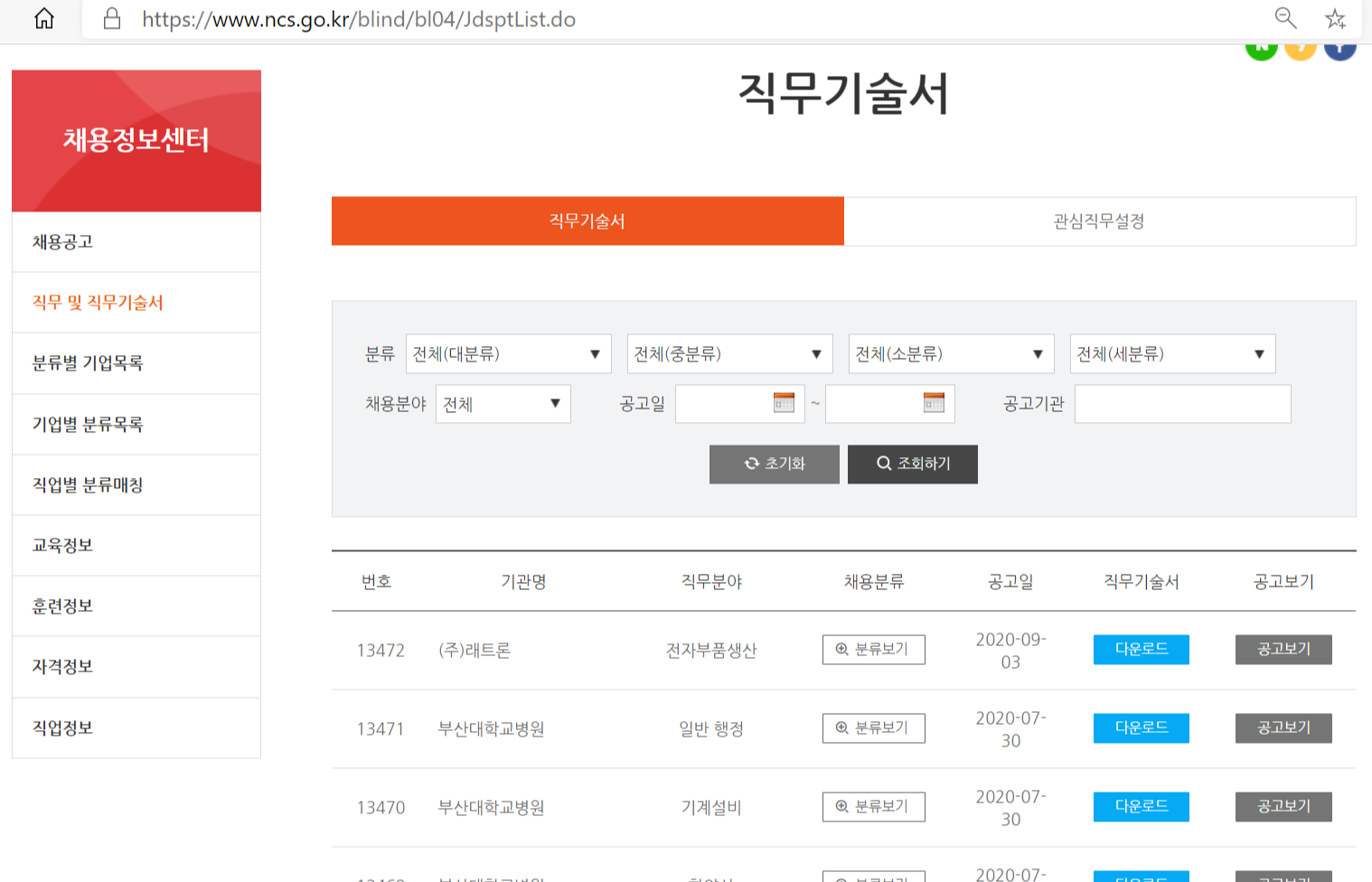 -관심 공기업 또는 채용분야 등으로 소팅하여 검색