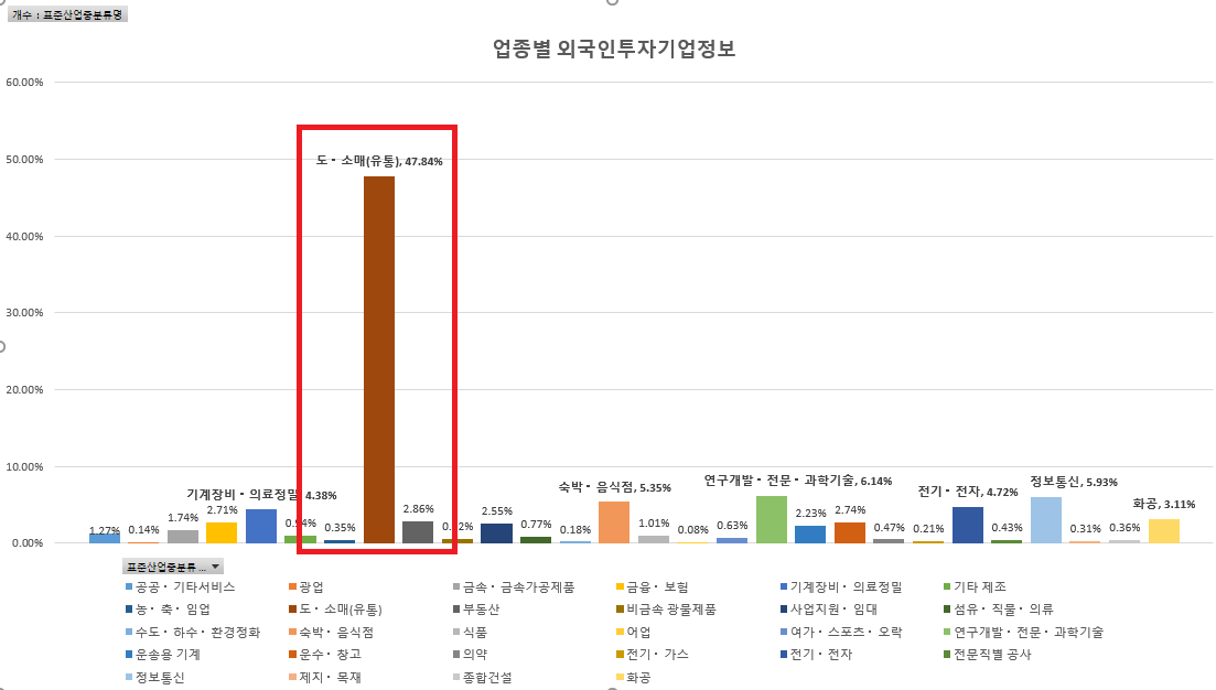 ※comment :앞서 언급 사항을 명확히 보여주고 있습니다. 국내 진출 외국계 기업은 한국을 '매출 거점'으로 신규 매출 창출이 주된 목적인 도소매 유통업종이 압도적으로 높습니다.(당연한 이치겠지요?) 물론 정보통신, 전기전차, 기계장비 분야에서도 우리 취준생들이 많이 진출하는 대표적인 외국계기업이 적잖이 있습니다만 전체 비중은 크지 않습니다.